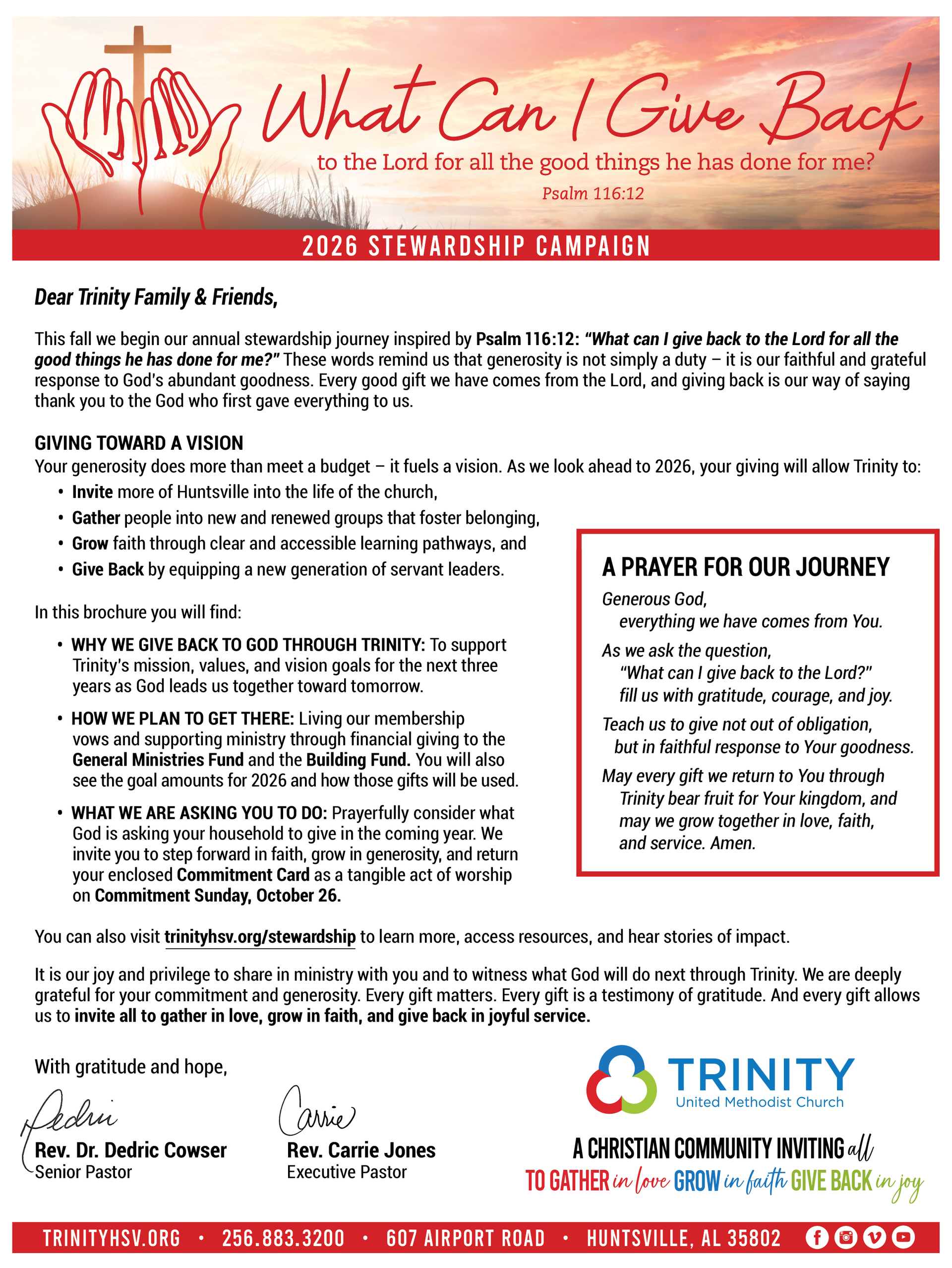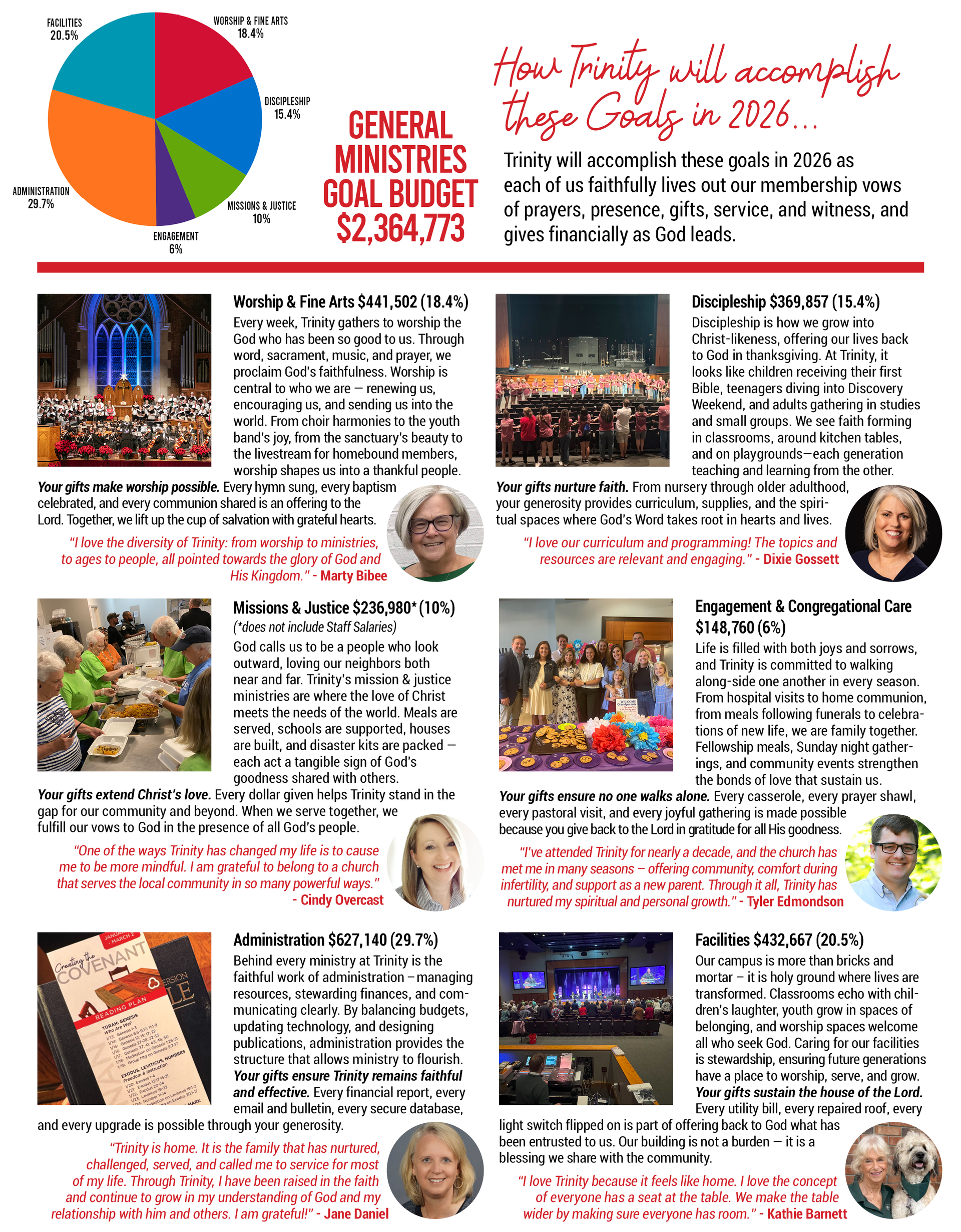 - To help members prayerfully decide how much to give on each fund, we will provide the 2026 budget amounts on the 2026 Commitment Cards to easily understand each fund’s proportion.